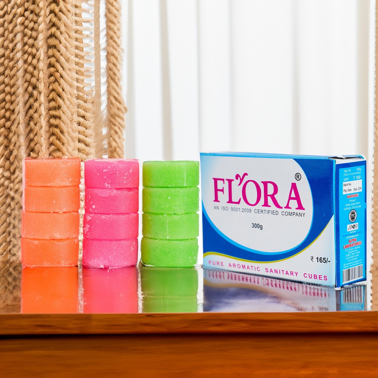 Experience long-lasting freshness with Flora Pure Aromatic Sanitary Cubes – your perfect hygiene partner for washrooms and toilets.